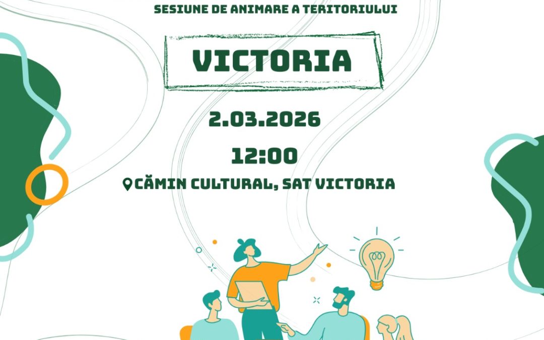 Invităm persoanele interesate să depună proiecte în viitoarele apeluri de finanțare să participe la întâlnirea de animare organizată în data de 02.03.2026, comuna Victoria. Vor fi prezentate ghidurile revizuite pentru intervențiile dedicate mediului privat non-agricol, mediului de afaceri și cooperativelor cu cofinanțare, precum și recomandări pentru elaborarea unor proiecte fezabile și ușor de implementat.